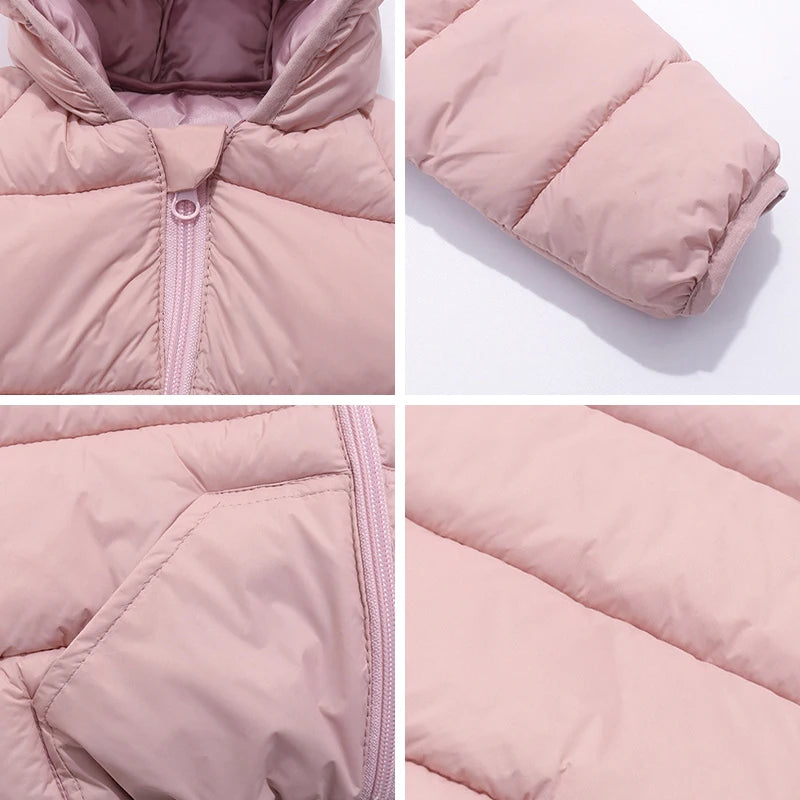 Autumn Winter Kids Down Jacket – Warm Hooded Zipper Coat 2–6Y Boys Girls Outerwear