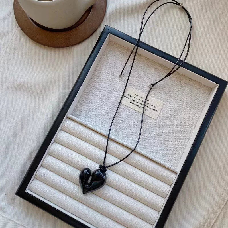 Charming Irregular Heart Pendant Rope Necklace – Adjustable Simple Jewelry for Women