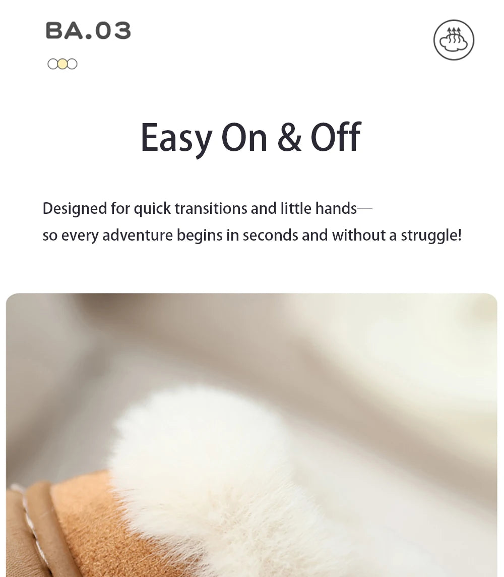 Empower little explorers with our winter boots, designed for growing feet aged 1-8! They combine effortless on-and-off convenience, supremely soft and healthy warmth, and a super-lightweight, non-slip sole. The perfect blend of comfort, safety, and independence for every cold-weather adventure.