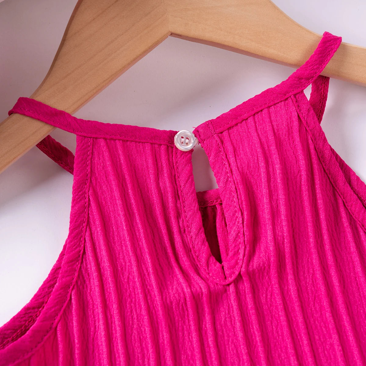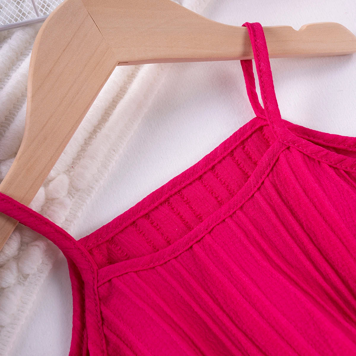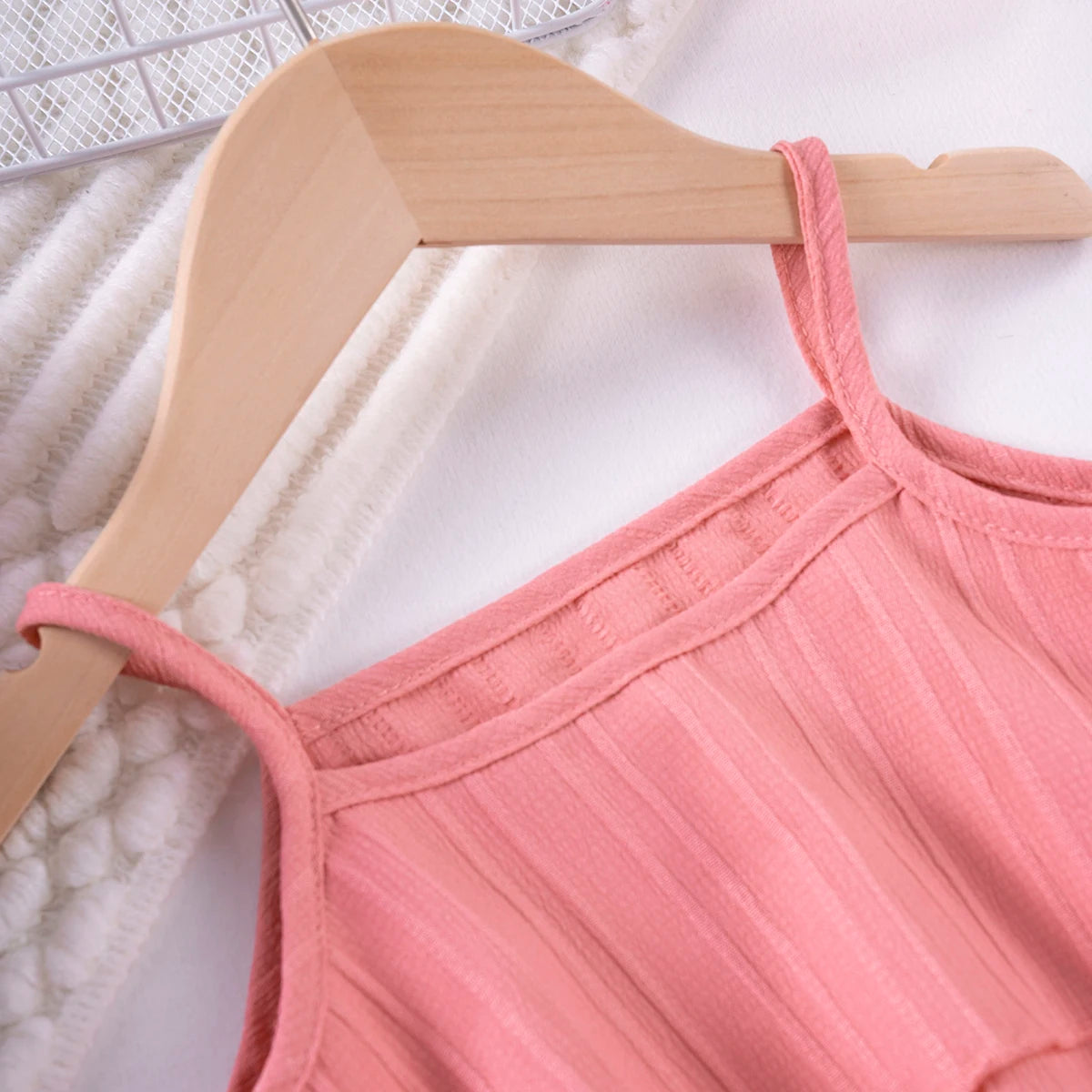 Girls Solid Color Suspenders Dress Set – Ruffles Top & Wide Leg Pants, Elegant Summer Outfit