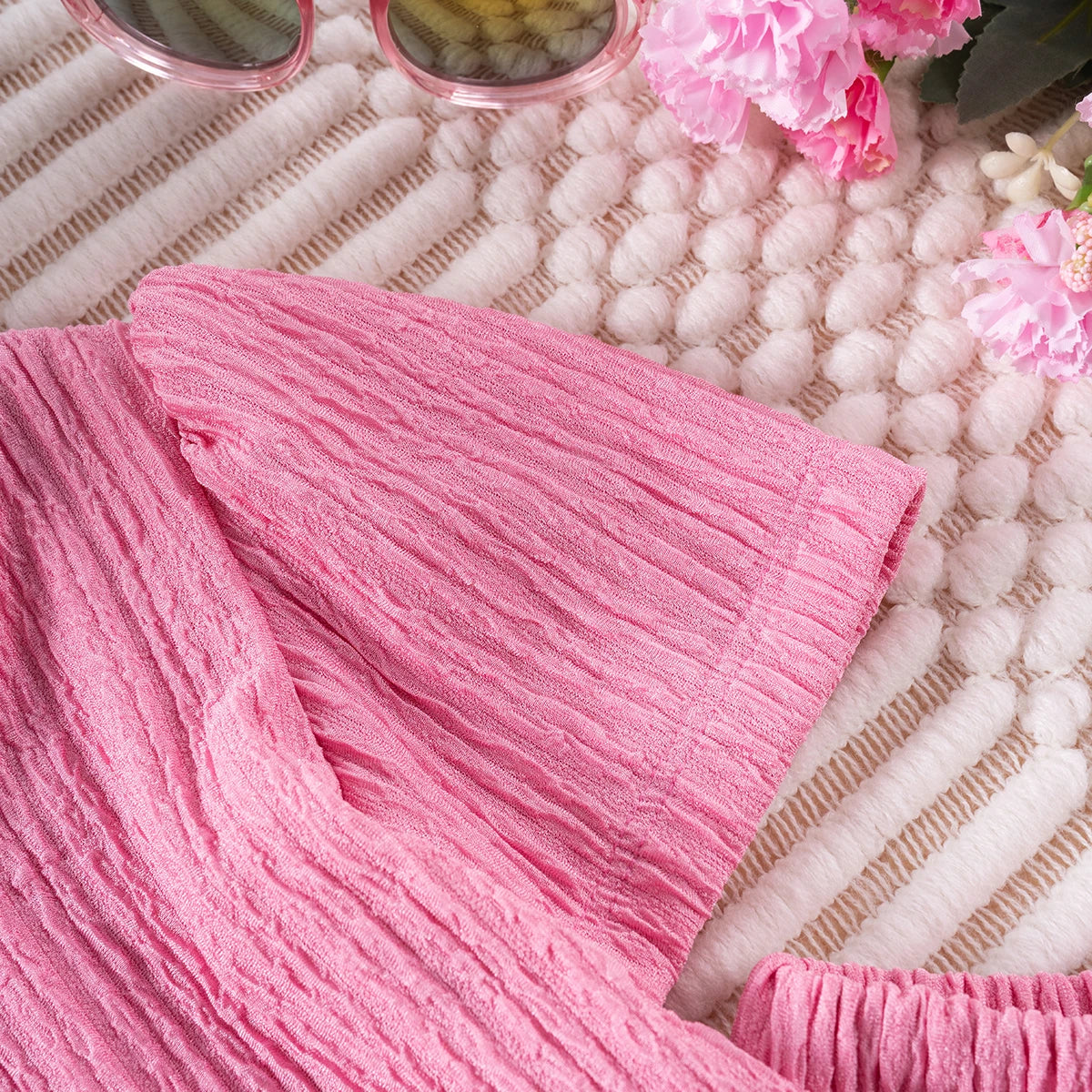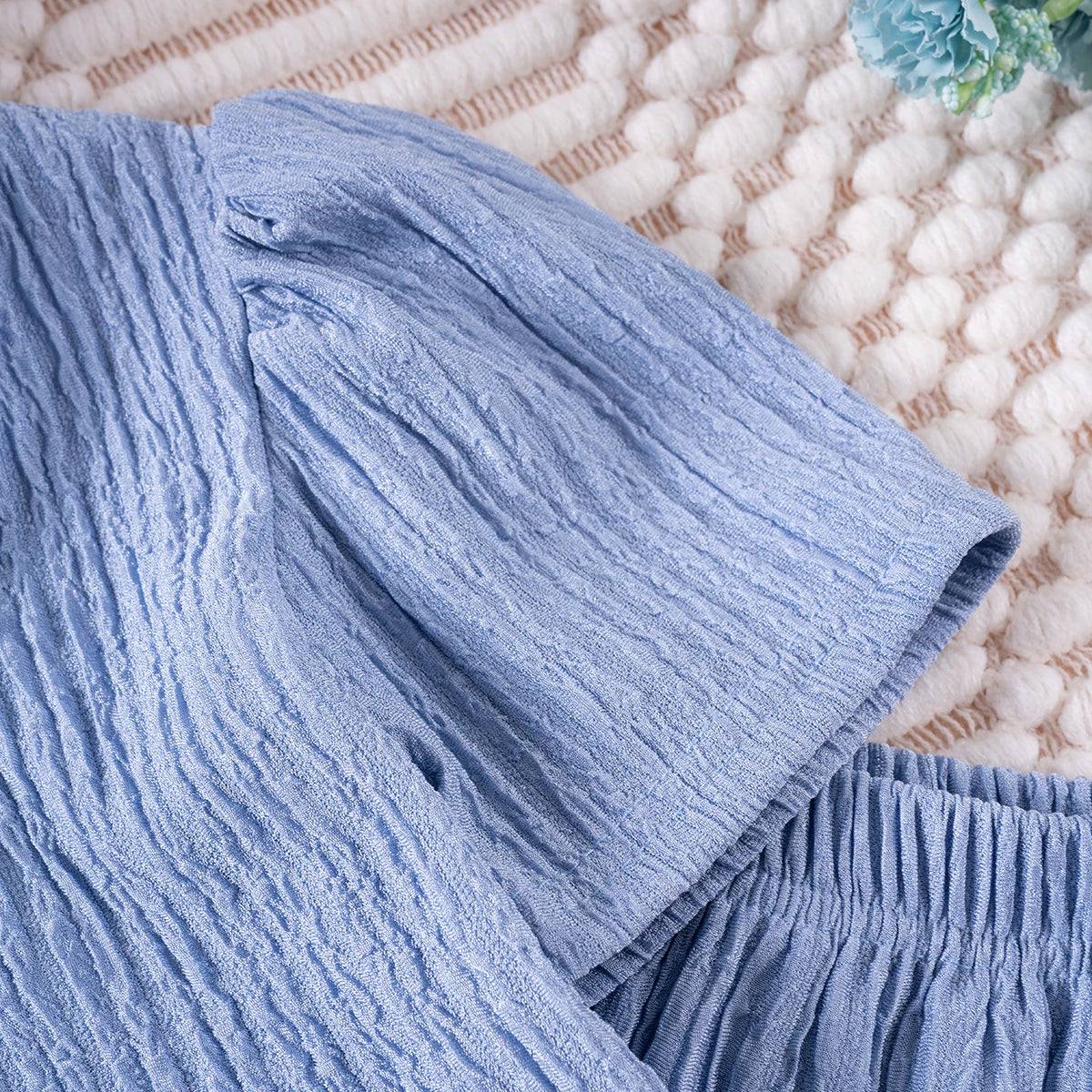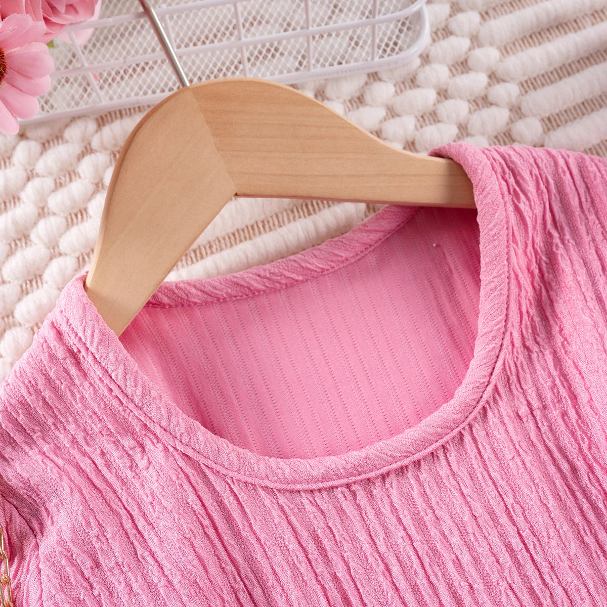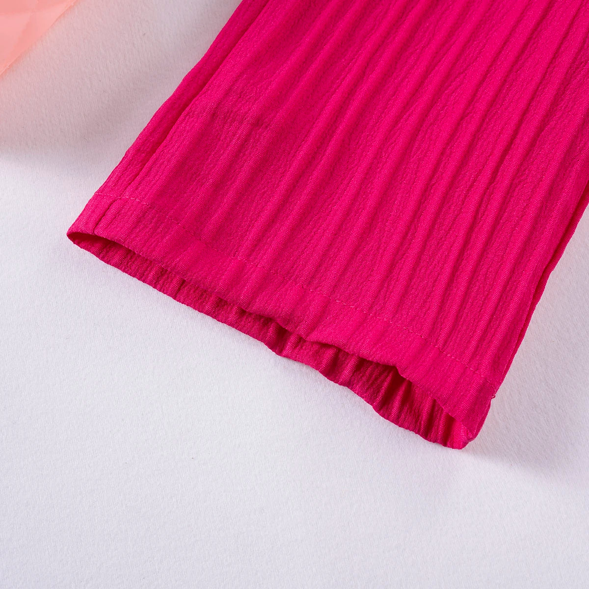 Girls Solid Color Suspenders Dress Set – Ruffles Top & Wide Leg Pants, Elegant Summer Outfit