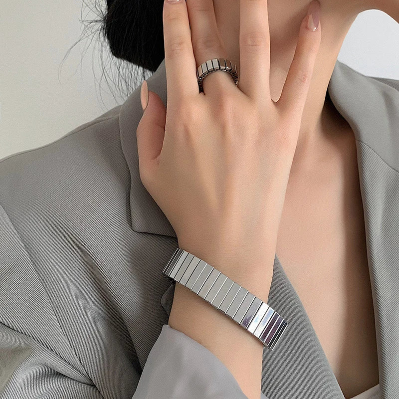 Loe Titanium Steel Gold Plated Heart Elastic Bracelet – Punk Hip Hop Jewelry for Women