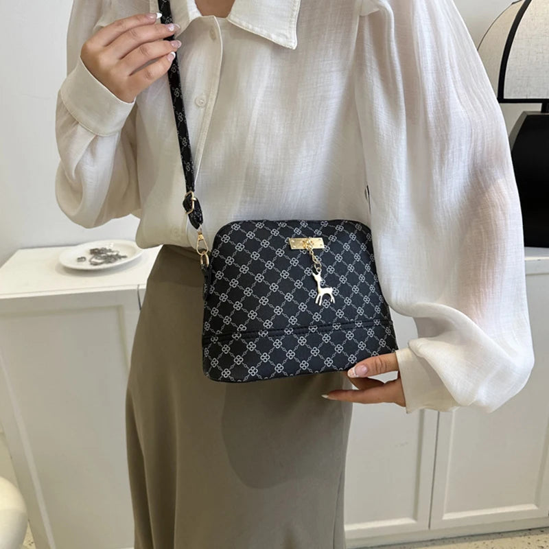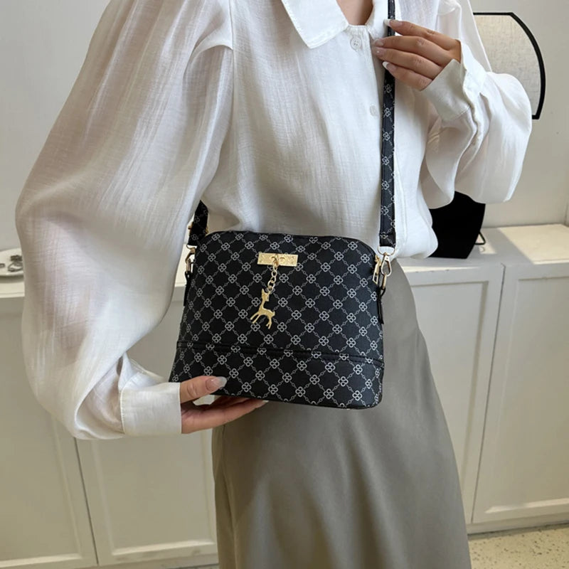 PU Leather Shoulder Bag – Small Shell Crossbody with Deer Pendant for Women
