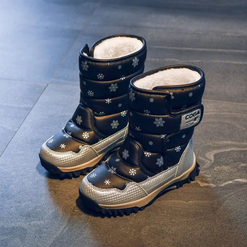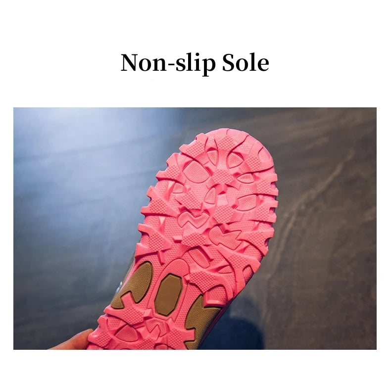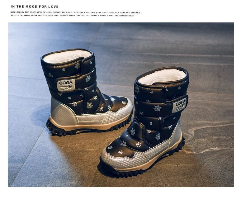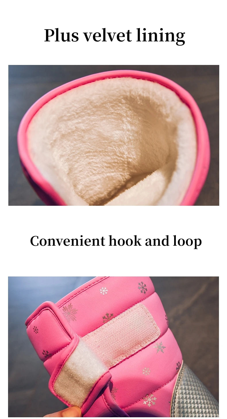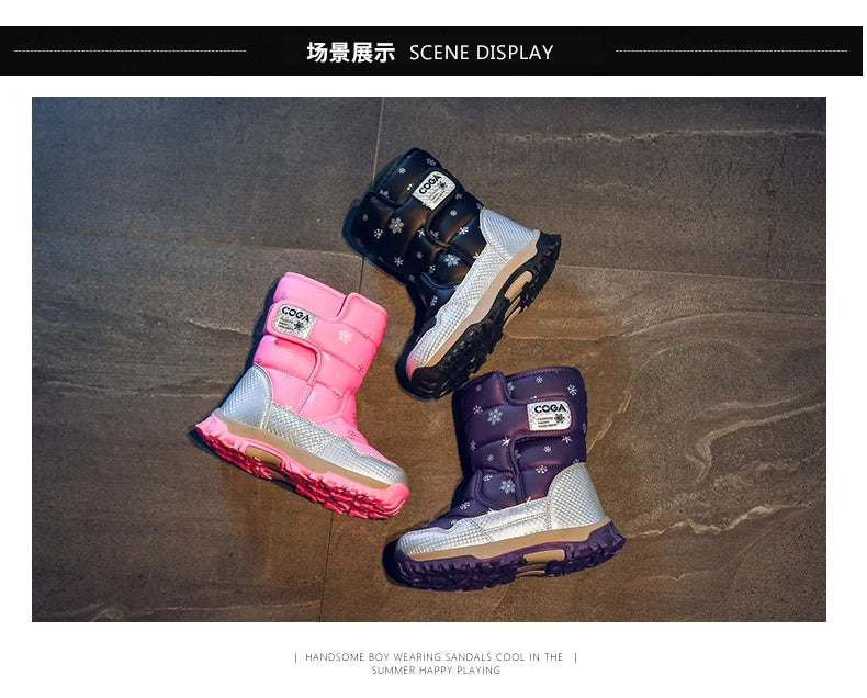 Winter Kids Snow Boots – Warm Plush Pink Ankle Shoes for Girls Boys, Non-Slip Outdoor Footwear